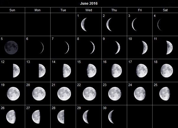 Лунный календарь на июнь 2016 года