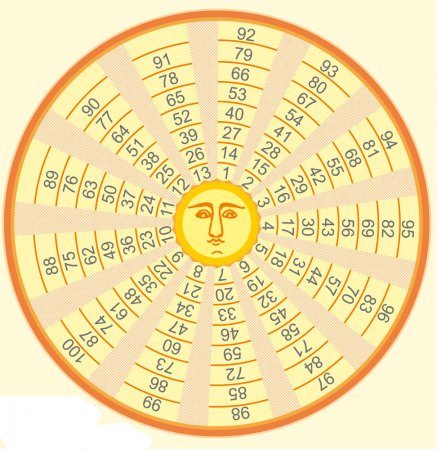 В середине, так называемого круга царя Соломона, располагалось солнце, а по лучам-радиусам цифры.