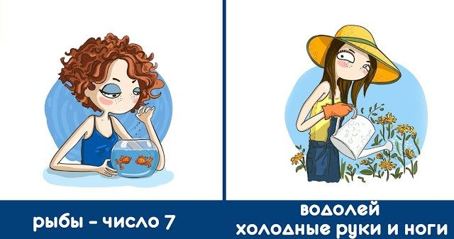 Все Водолеи известны своей независимостью, но мало кто знает, что у водолеев, как правило, бывают холодные руки и ноги! Поэтому Д.Стелхорн, астролог и эксперт в области фэн-шуй, говорит что «водолеи регулируют кровообращение в теле», именно поэтому они всегда хотят включить обогреватель!Рыбы