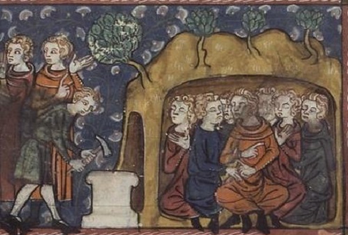 Однако из-за божественного вмешательства или чего-то иного (об этом подробнее разберем ниже) юноши не погибли, а вскоре один за другим заснули. Проходили дни, месяцы и годы, а они все спали и спали. И так прошло два столетия.