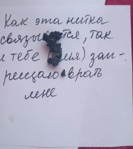 «Как эта нитка связывается, так я тебе (имя «подозреваемого») запрещаю врать мне».