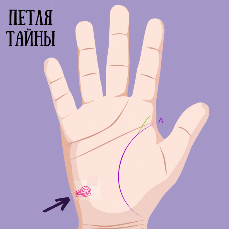 Если вы заметили на своей руке на холме Луны петлю, как на рисунке выше, это значит, что вы очень тонко чувствуете энергии. Вы можете управлять этими энергиями с помощью стихий и природы. Часто люди с этим знаком на руках предпочитают использовать методы и инструменты нетрадиционной медицины для улучшения своего и состояния людей, которые их об этом просят.