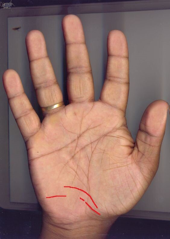 Эта линия берет свое начало от линии жизни, проходит по холму Нептуна и чаще всего заканчивается на линии Луны. Бывают случаи, когда эта линия берет свое начало и с других участков руки, а именно с браслетов ладони. Иногда начинается с линии Меркурия, которая идет в сторону холма Луны.