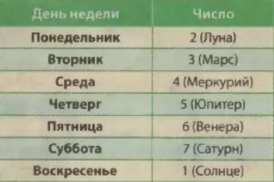 Вспомните дату вашего знакомства. Предположим, оно произошло 21 числа в субботу. Этому дню недели соответствует цифра 7 (см. таблицу). Сложите 21 и 7 до получения простого числая 21 +7 = 28; 2 + 8 = 10; 1 +0= 1. Итак, число знакомства вашей пары — единица. Теперь зная заветную цифру, вы можете предугадать, как будут развиваться отношения,! и научиться обходить острые углы.