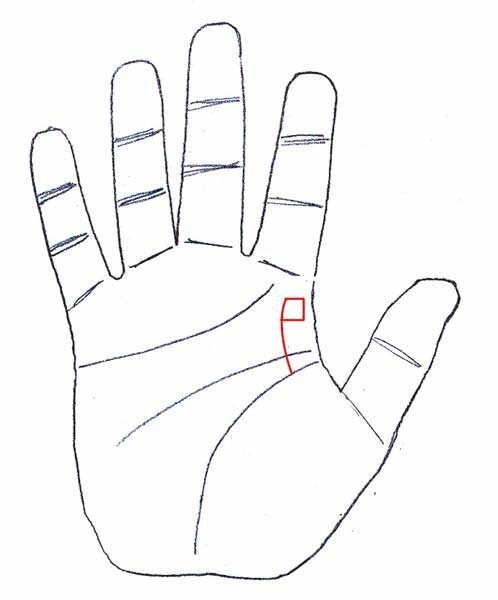 Еще раз посмотрите на свою линию жизни, только теперь устремите взгляд в ее начало. Если от нее идет вертикальная линия, пересекающая линию головы — это хороший знак. Особенно, если она заканчивается небольшим прямоугольником, напоминающим флаг. Этот знак уговорит о том, что вам скорее всего предречена счастливая старость. Нередко у людей с таким знаком есть талант к писательству.