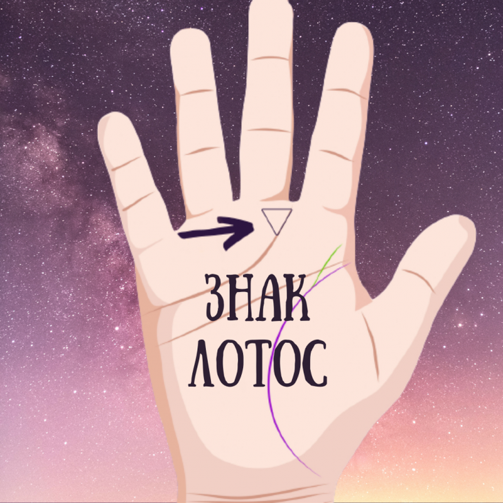 Еще один необычный знак, который можно увидеть у баловней судьбы — это лотос или небольшой треугольник, которым заканчивается линия сердца. Этот знак указывает на образованного и развитого человека, который очень ярко выделяется из толпы.